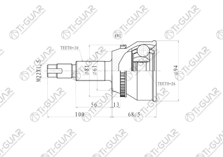 ШРУС наружный /передний левый /правый /TI-GUAR для Toyota Harrier 2003-2008 GSU35W GSU36W; 26*61*30; TG-95102Z48; (859305 TO-102A48) 0110GSV40A48 434100E011 434200E011
